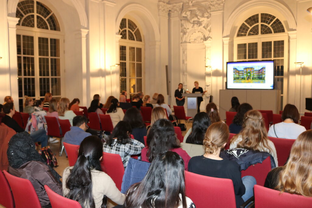 Dr. Lisa Deloch and Alina Depardon – our guest speakers of the evening at the wonderful Wassersaal/Orangerie Erlangen (Bild: FAU, ARIADNE)