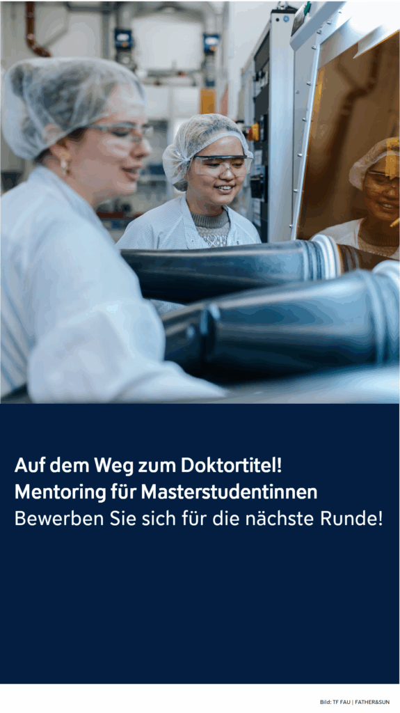 Mentoring für Studentinnen im Master oder Staatsexamen, die sich für eine Promotion interessieren.